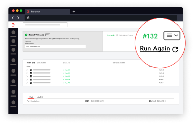 Rundeck makes it simple and easy to set up self-service automation for job scheduling. Automate daily reports, file transfers, and other periodic operations without the challenge of maintaining cron or Windows Task Scheduler.